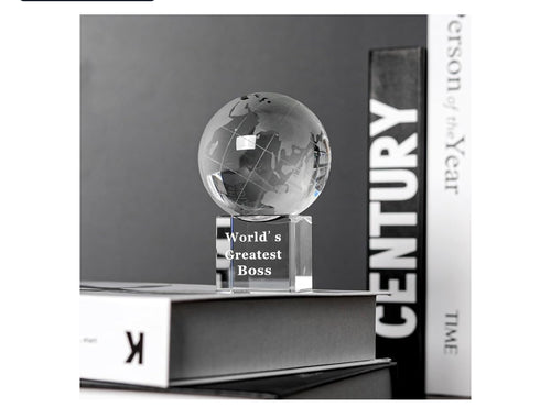 LONGWIN World's Greatest Boss 2.76" Crystal Globe Awards - Unique Gifts for Boss on Bosses Day, Birthday, Christmas, Thanks Giving Day